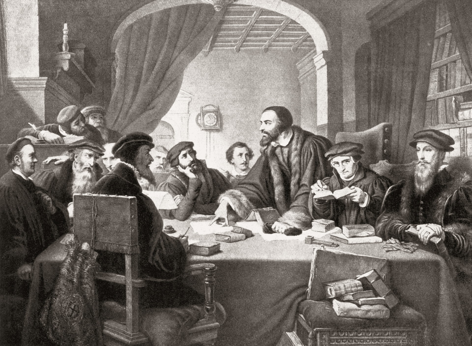 In 1541, the wearing of ornamental objects was banned by the reformer Jean Calvin in Geneva, forcing goldsmiths and jewelers to turn to watchmaking. pp-archive-huguenots-refuge-geneva-1658 Developing watches 1685, many Huguenots took refuge in Geneva and contributed to the development of watchmaking.